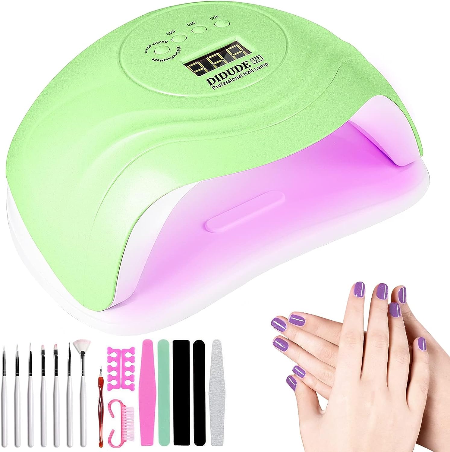 Esto es especialmente útil para asegurar que el esmalte semipermanente se seque por completo y para evitar el sobrecalentamiento de la lámpara.